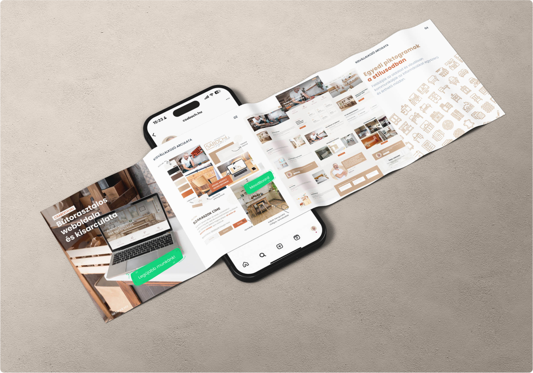 Elkészítjük a branded logóját és teljes arculatát. A tervezéstől a nyomdai gyártásig teljes körű szolgáltatást nyújtunk, hogy márkád egységes és professzionális megjelenéssel rendelkezzen minden platformon, így kiemelkedj a tömegből. Rendeld meg új landing- vagy weboldalad és 10% kedvezményt adunk, ha logót is rendelsz mellé.